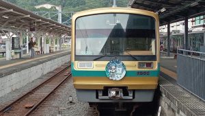 小雨交じりのあいにくの天気でしたが、東海道新幹線の車内メロディ「Ambicious Japan」の聞き納めを兼ねて三島まで東海道新幹線に乗り、07月13日はラブライブサンシャインに登場する津島善子の誕生日という事も有り、伊豆箱根鉄道7000系「幻日のヨハネ」ラッピング列車に乗ってきました。