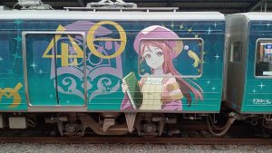 修善寺駅にて、中間車側面の桜内梨子のラッピング。ラッピングを写しているようで、目的はランボードの足の間隔を知りたいために写した(という苦しい言い訳)。
