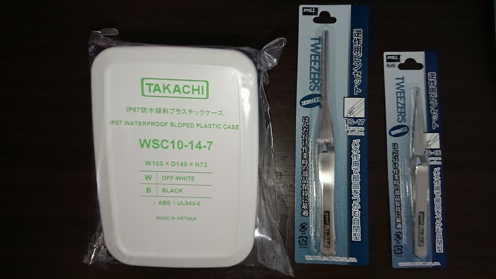 こちらはヨドバシに行く前に秋葉原のマルツで買った、タカチのケースと逆作用ピンセット
