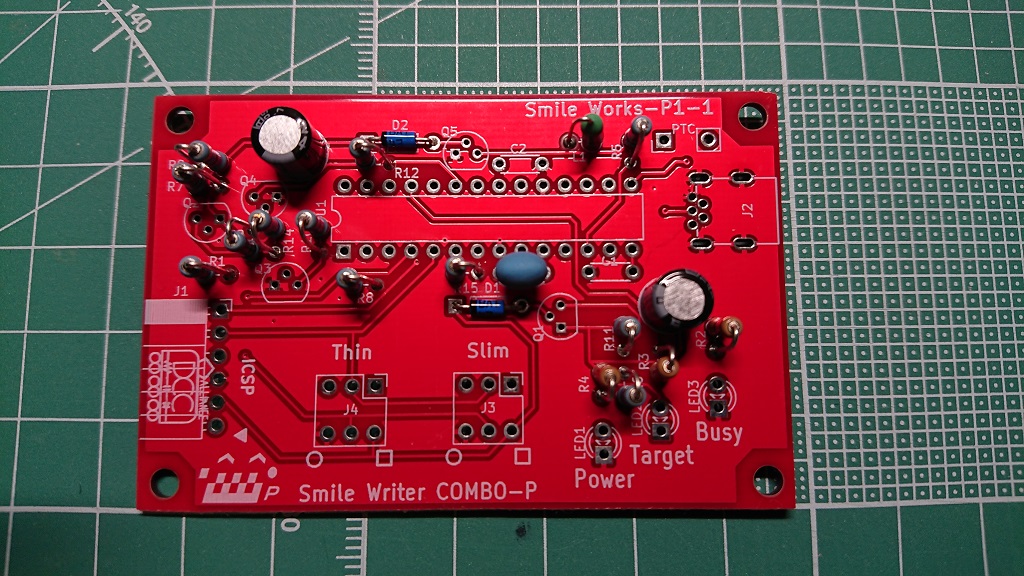 Smile Writer Combo-pの制作(2) 投稿者: 夏蜜柑 | 2020/02/20 0件のコメント 仕事の後に制作をしたので、コンデンサ2コとセラロックとコイルを付けただけです。 次はUSBコネクタとICソケットとトランジスタと付けて…早く完成させないとワンコインデコーダーのソフトウェア書き込みも出来ないので… ツイート