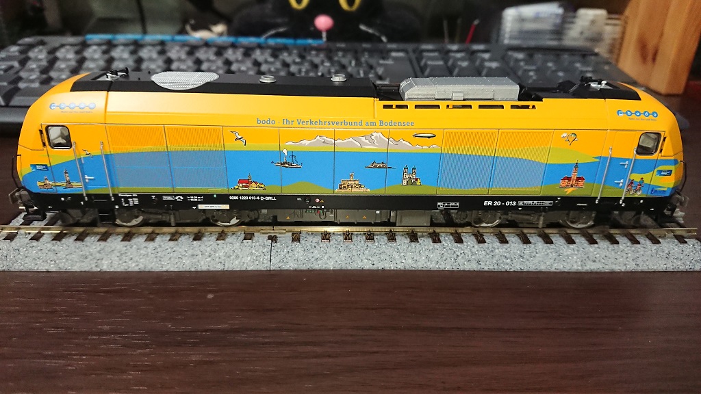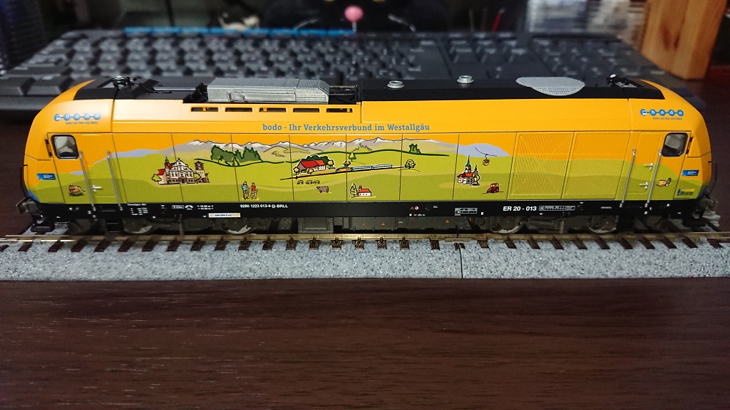 側面には、Bodensee(ボーデン湖)とWestallgäu(アルゴイ西部)の牧歌的な光景が描かれています。牛や羊が牧草を食べる中、列車がゆっくり走り抜けていく…そんな光景です。とはいえ、そろそろ電化されますけれども!!
