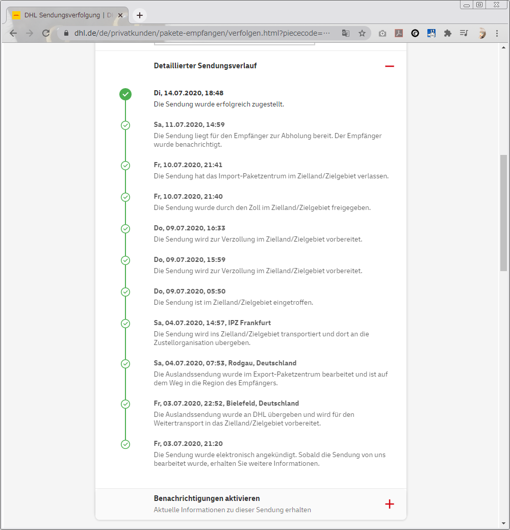 まずはいつものトラッキングから、フランクフルトを5日で抜けているので、ちょっと時間が掛かった感じです。また、Lippeでは、購入後1か月商品が発送されない等のケースが発生しているそうで、注文から3日で発送された私は運がよかったのかもしれません。