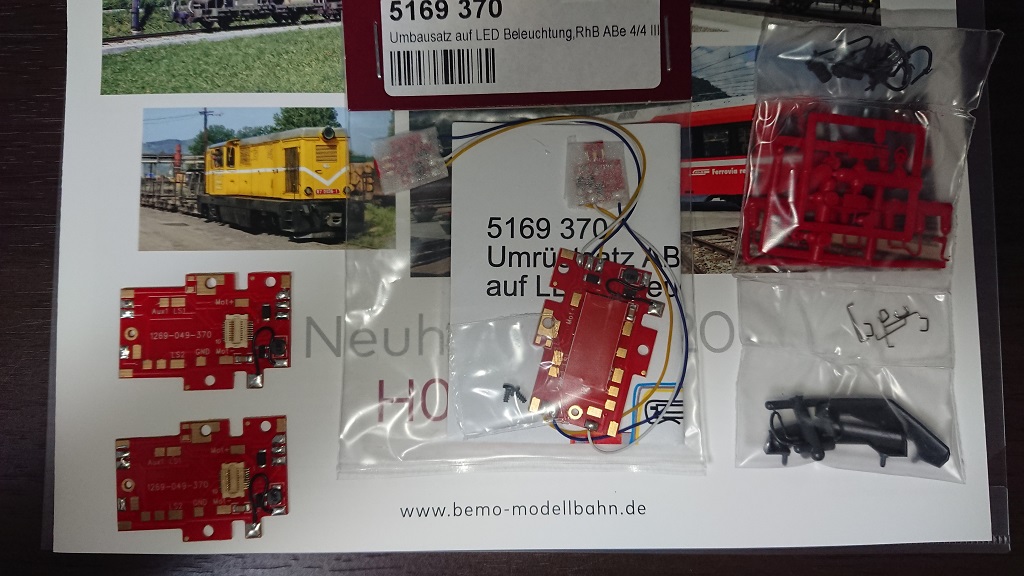 去年末に購入したBEMOのABe4/4を近代化(NEM651→Next18)したりする為のメイン基板とライトのLED化キットと後は手すりなどの付属品です。これだけで12k…