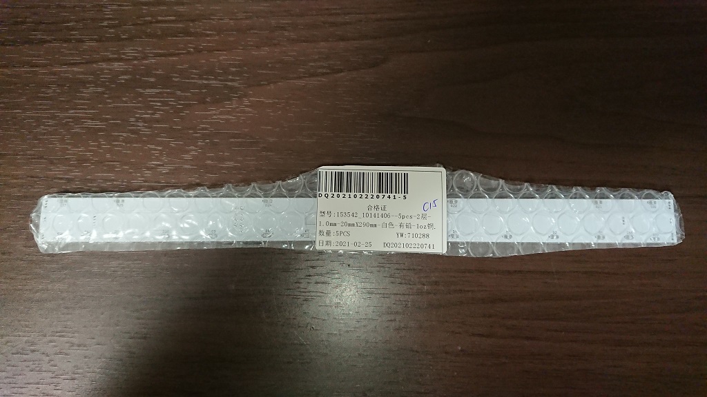 ハルバー重工さんの室内灯基板に触発されて手持ちのRoco客車用に設計した室内灯基板が、製造元のElecrowから到着しました。こちらの基板、送料をケチって国際書留にしたせいか、DHLの手によって中国→ドイツ→イギリス(何故????)→ドイツ→日本と、送料7ドルとは思えない距離を移動してきました。