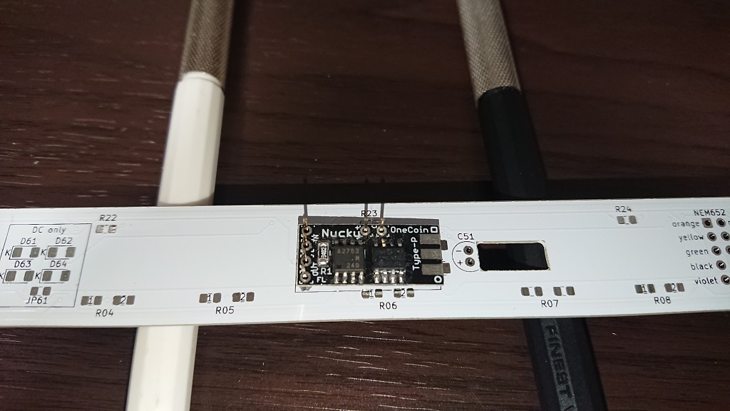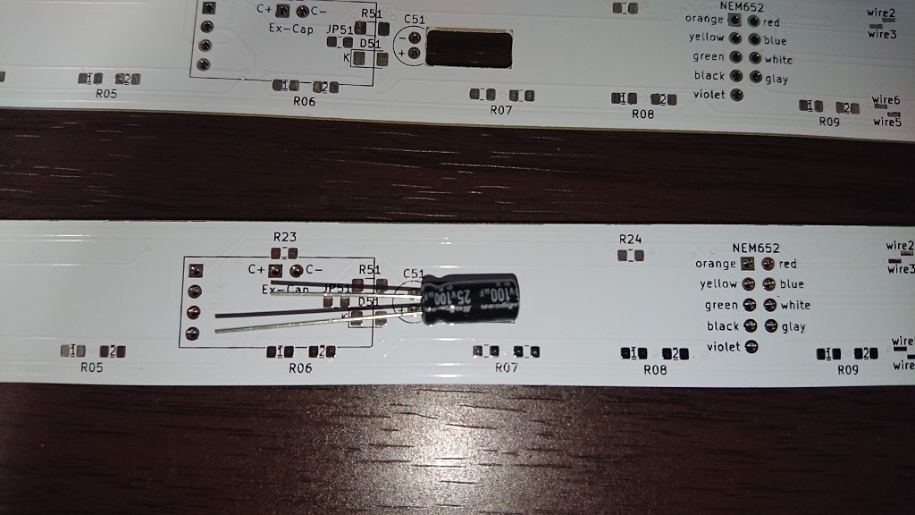 ワンコインデコーダ取付部も、寸法が合っていて取り付けには問題なさそうです。最も、キャパシタは穴が短くて嵌められない事が判明…