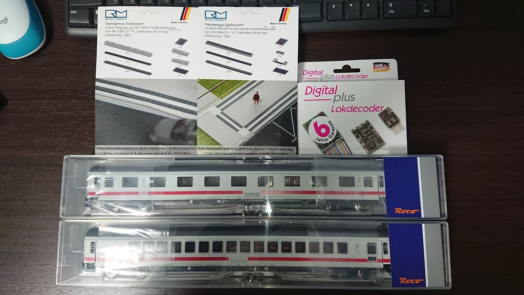 それと、Lippeで予約・購入した2020年製品のIC客車なども到着しました。IC客車だけだと送料が勿体無いので、課税されない程度にLenzのデコーダとRietzeの道路関連のアクセサリを購入しています。