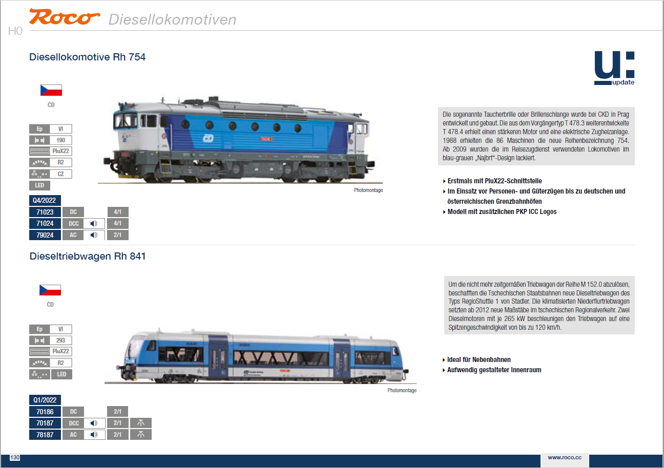 StadlerのRegioShuttle 1のČeské dráhy(チェコ鉄道)バージョン、真っ赤なDBの車両も良いのですが、CDの白地に青帯の爽やかな車両も欲しかったので、これも欲しい製品です。以前に8PinのDCCデコーダに対応した製品がありましたので、Plux22に対応した、改良品と言えます。