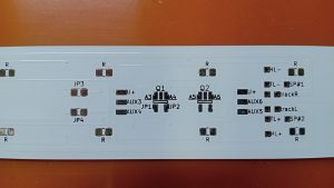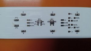 見本を兼ねて、制御客車用の室内灯用基板を組み立て、Logic出力をパワー出力に変換するトランジスタなどを取り付け。
