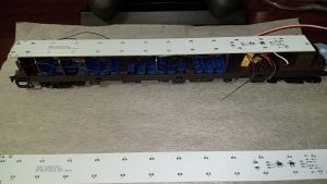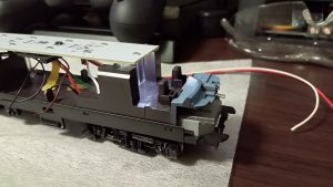 左右に分けて配置したLED、動作確認では短いファンクションデコーダを使ったからわかりにくいが、サウンドデコーダを搭載してもLEDがデコーダに遮られる事はない想定。